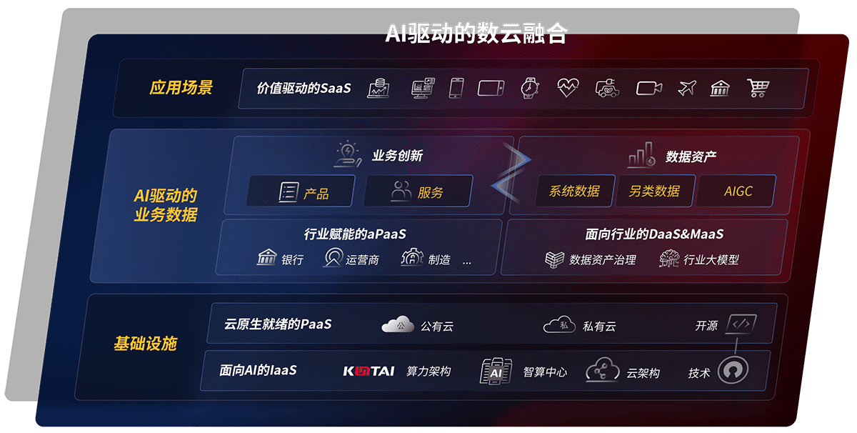 推动云网融合和算网一体的进程中,,开元数码在算力基础设施、、、智算中心建设与运维、、、系统应用开发平台的搭建等多方面,,,,与运营商客户协同创新,,助力转型更快、、、更稳推进