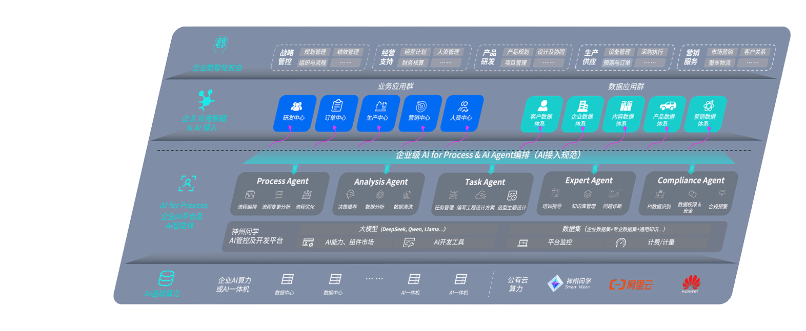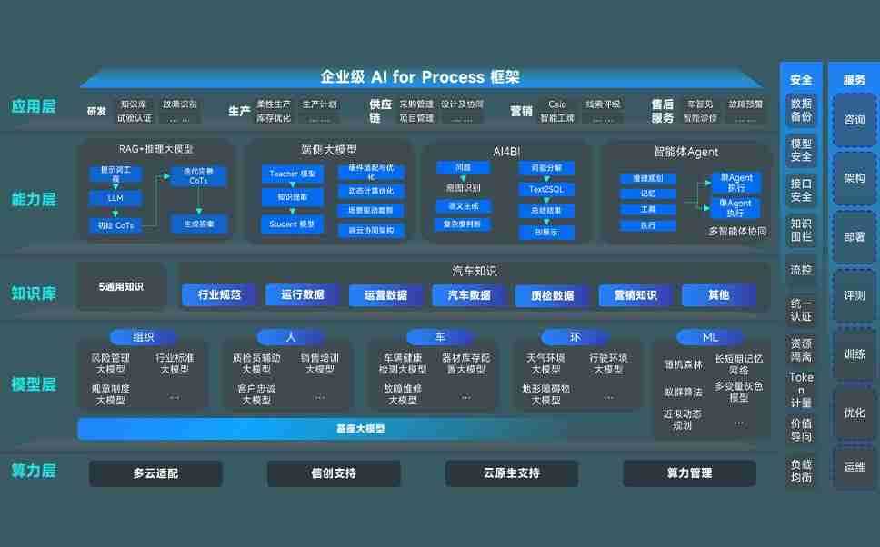端到端的一站式AI工作空间深度融合了从企业战略规划到日常经营的全流程业务板块,,,,定向解决车企内部领域多、、、、部门多、、、、链条长、、场景碎片化等难题,,,,支持车企快速构建以AI为核心的生产力写作体系,,实现任务执行与AI能力的无缝集成与交互