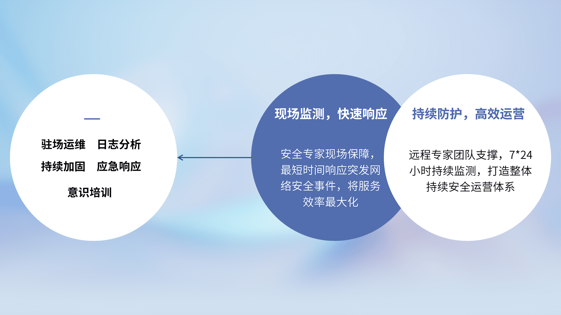 7X24小时持续监测安全事件,保持安全策略有效性,降低资产脆弱性风险,,,,精准拦截黑客攻击,,,,减少被黑客利用的机会,,,,第一时间遏制,,降低损失。。。